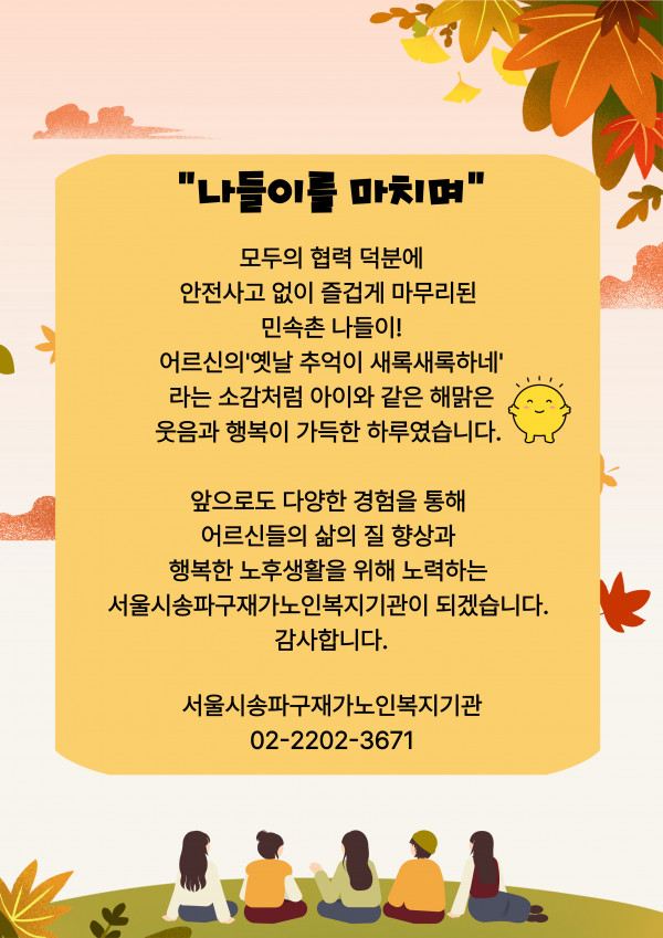 안녕하세요. 서울시송파구재가노인복지기관입니다.