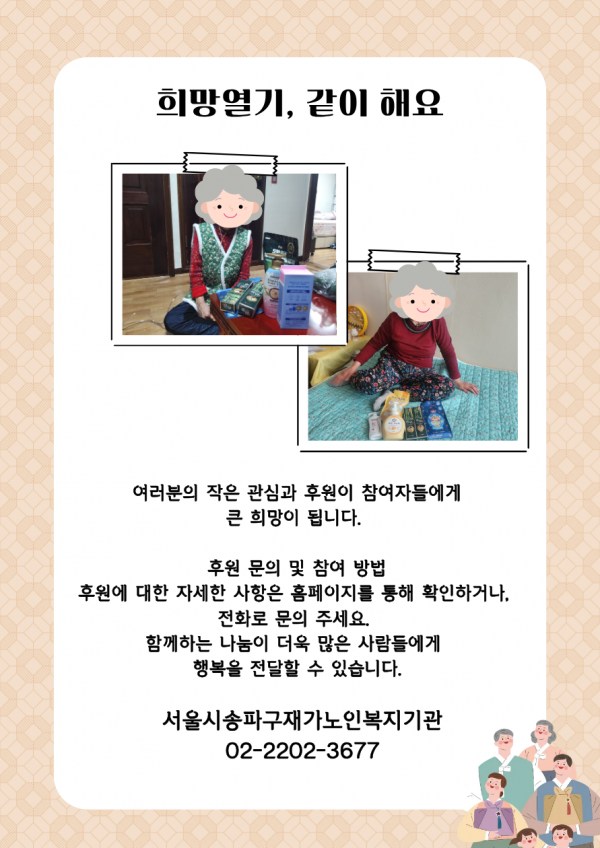 ■ 지원처 : 독거노인종합지원센터, 중앙노인돌봄지원기관(LG생활건강, SK이노베이션, 서울사회복지공동모금회, 굿네이버스)