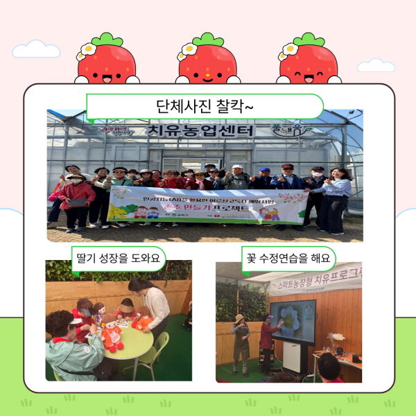 노인맞춤돌봄사업 AI 사업 참여 대상자 어르신들 함께 딸기농장 체험 활동을 다녀왔습니다.