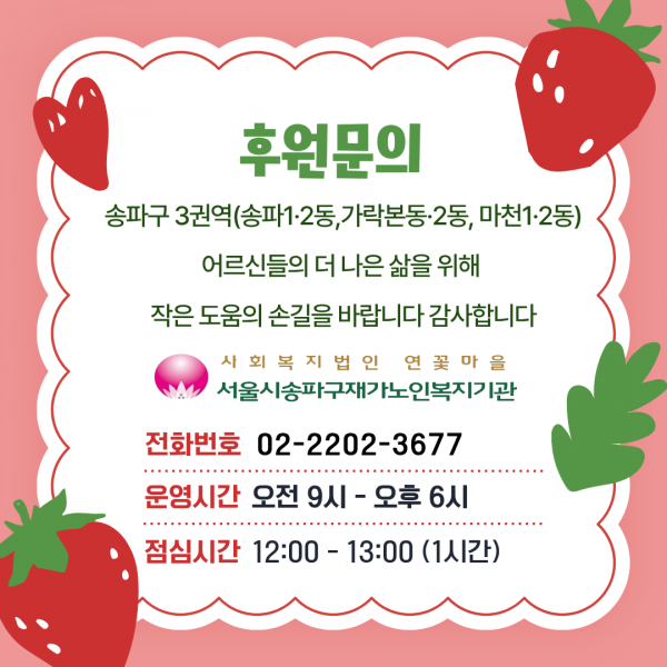 안녕하세요. 서울시송파구재가노인복지기관입니다.
